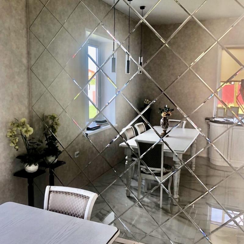 Использована серебряная зеркальная плитка «вытянутый ромб».