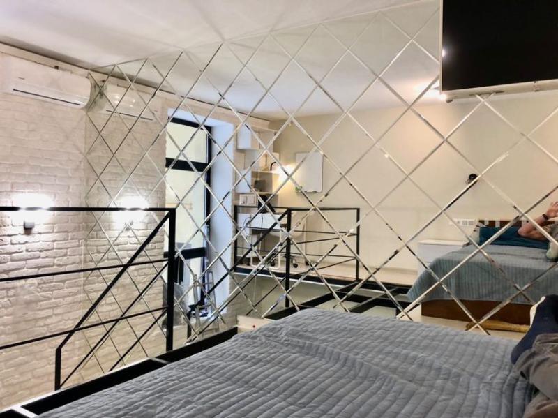 Зеркально панно было сделано из зеркальной плитки 30х30 см, размер панно 255х255 см